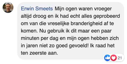meldde al na de eerste keer dat ze het gebruikten dat hun ogen minder droog en geïrriteerd waren.